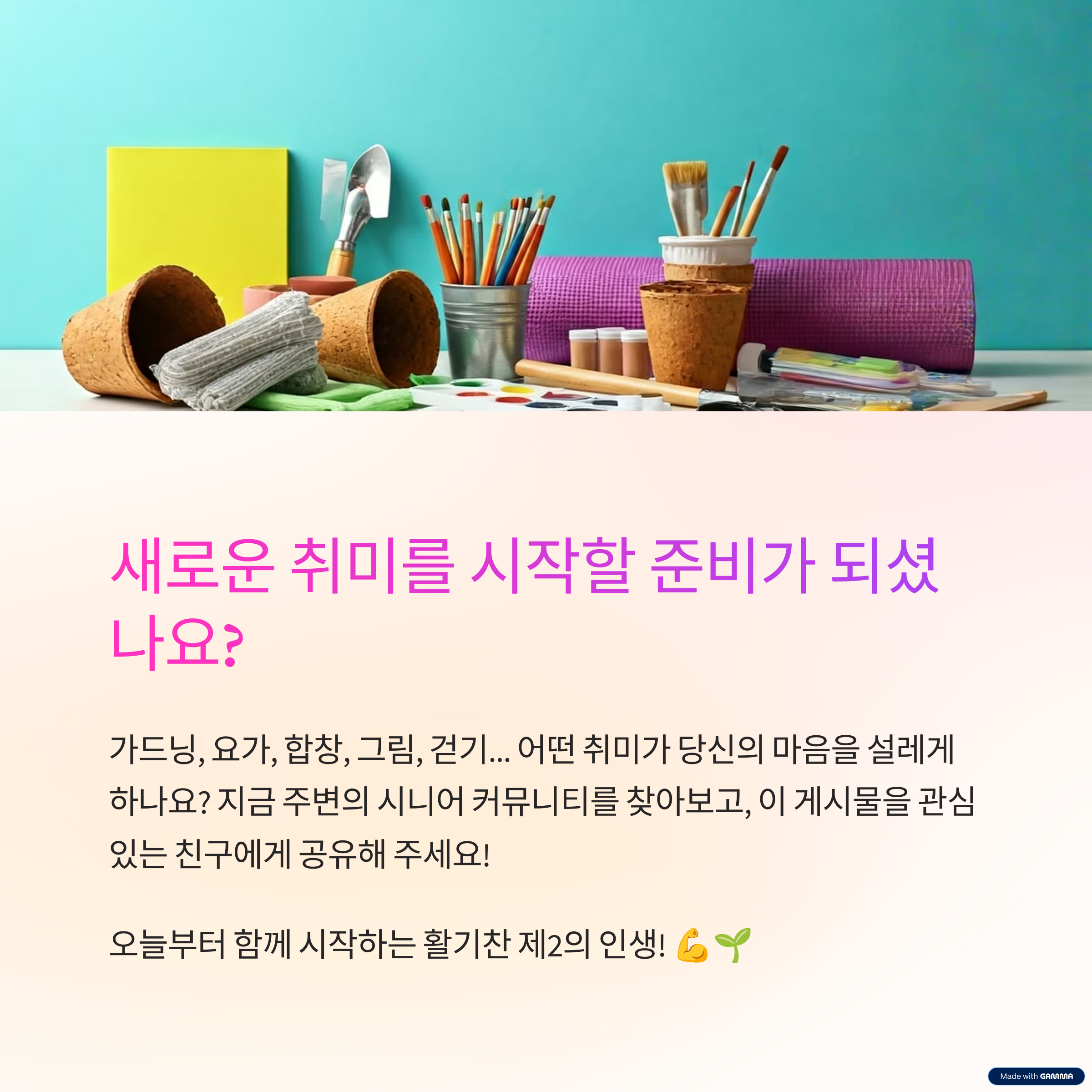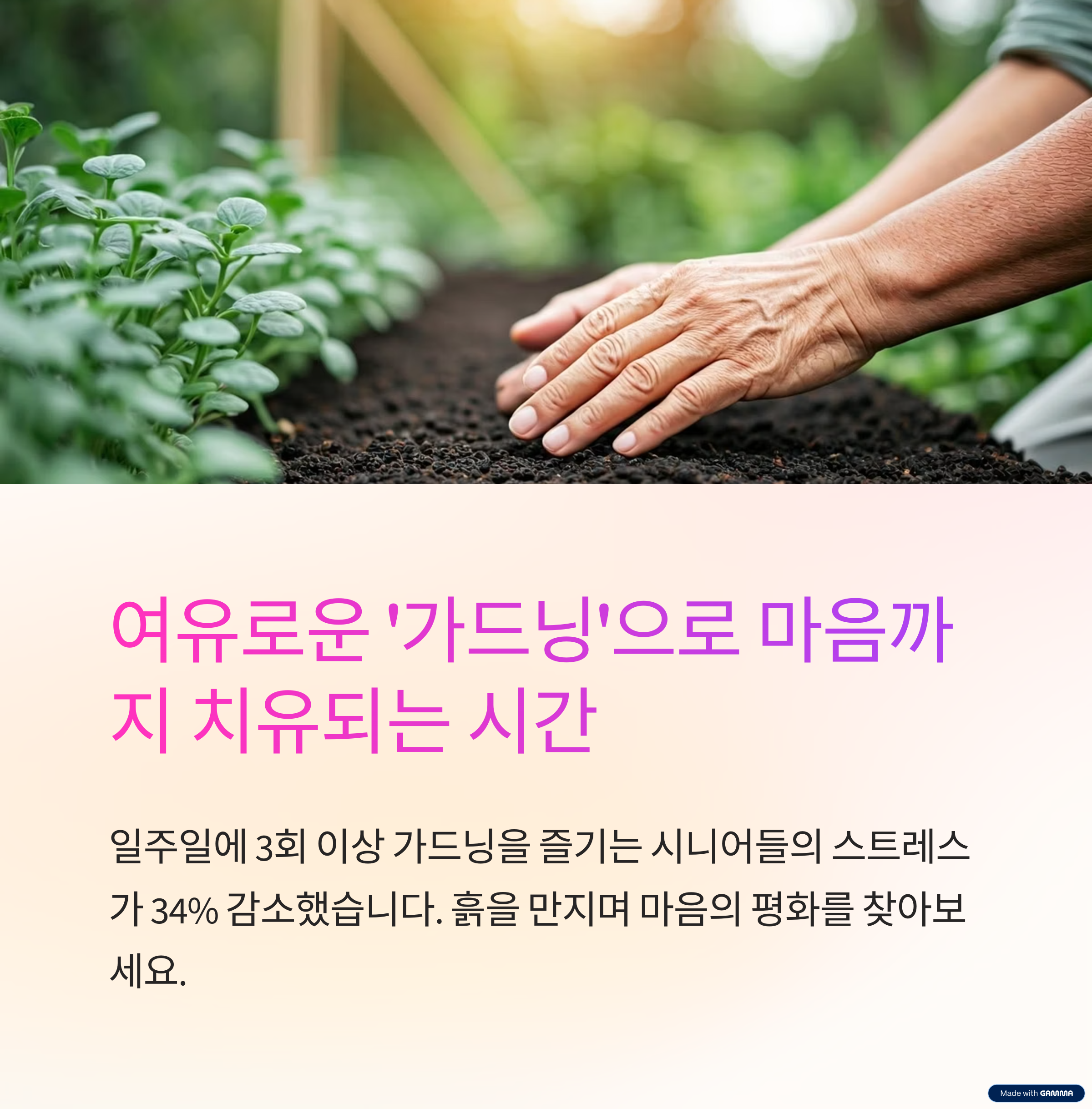 "가드닝은 정신 안정과 신체 건강을 동시에 챙길 수 있는 대표적인 시니어 취미입니다."